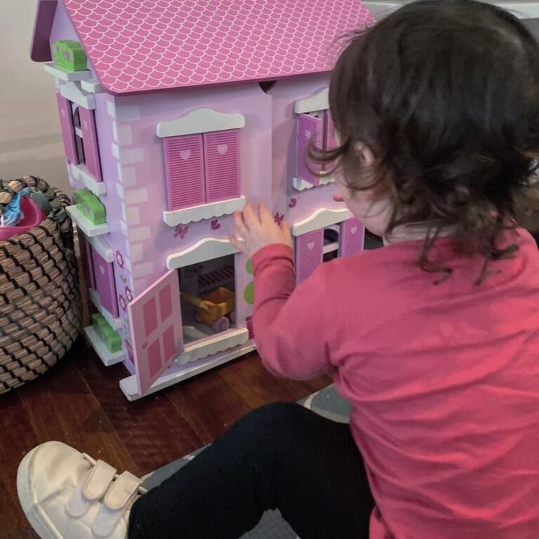 Pretend play is one of the most important ‘occupations’ for Little Peas. It is a way for them to establish, build and solidify their developmental skills including self care skills, social skills, cognition, abstract thought, language, emotion regulation, fine and gross motor skills. This Little Pea is 18months old and is learning about opening and closing dollies house, putting dolly to sleep, giving dolly a bottle and watching dolly go to the toilet. All while taking turns, narrating what she is doing, repeating new words her play partner (Rebecca and her Mummy Pea) says, developing her reach and grasp patterns, learning to manipulate small objects, and much much more. Pretend play is an opportunity for Little Peas to impose meaning on what they have seen and allow them to make sense of the world and the every day actions they see. There are many stages of pretend play which develop with age and developmental capacity of the child.
